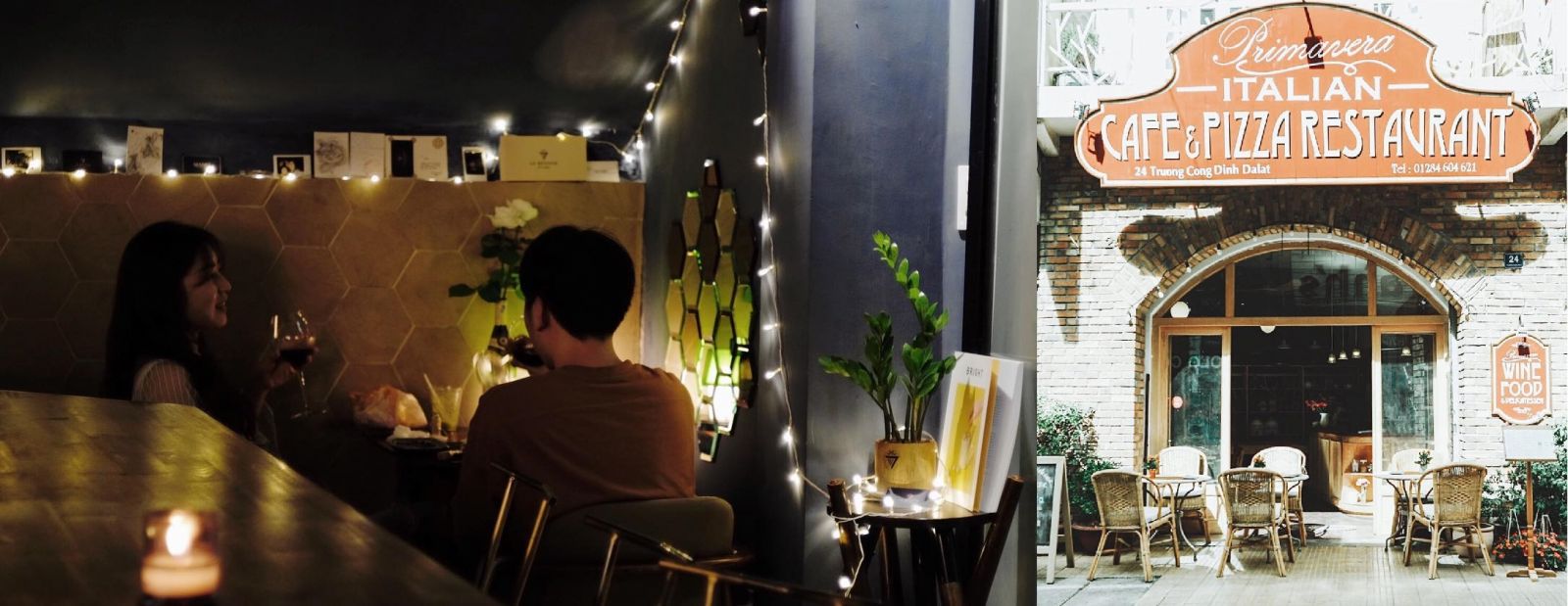 Được sở hữu từ một đầu bếp người Italy, Primavera Italian nằm gọn trong một biệt thự kiểu cổ đậm nét phương Tây trong con hẻm của Dốc Nhà Làng. Không gian bên trong không quá lớn nhưng được sắp xếp rất tỉ mỉ từ bàn ghế, đèn, vật dụng,... vô cùng cổ điển và ấm áp. Bên cạnh một ly rượu vang Le Mortelle POGGIE ALLE NAME kết hợp các loại trái cây, pho mát sẽ là một sự khai vị lãng mạn cùng người yêu dưới bầu trời Đà Lạt.